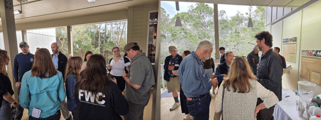In late February the Apalachicola National Estuarine Research Reserve hosted its Semi-Annual Research Symposium. Topics ranged from hydrologic flows in the Apalachicola River, restoration projects, analysis of long-term nutrient dynamics, changes in the marsh, cultural resource studies, and more. Topics highlighted the active research and restoration community around the greater Apalachicola Bay area and highlighted the reserve’s partnerships and community. Reserve staff members Samantha Lucas presented about the bay’s zooplankton communities and Bekah Pagliaro presented about a recent project using drones to categorize marsh vegetation types. A poster session, breaks, and lunch on-site sponsored by the Friends of the Reserve allowed attendees to discuss research projects further, meet new people, and develop new relationships and ideas for study. The event was a great success with the largest number of attendees registered since ANERR started holding this event in 2020.
